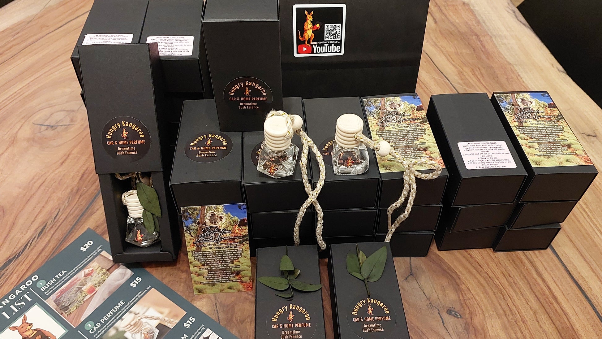 Hungry Kangaroo Car Perfume blends lemon myrtle, eucalyptus, mountain pepperleaf, wattleseed and subtle woody notes to create a long-lasting fragrance that keeps your car smelling fresh every day.